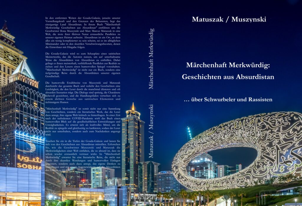 In den entfernten Weiten der Gouda-Galaxie, jenseits unserer Vorstellungskraft und den Grenzen des Bekannten, liegt das einzigartige Land Absurdistan. In ihrem Buch „Märchenhaft Merkwürdig: Geschichten aus Absurdistan“ entführen uns die Geschwister Ilona Muszynski und Marc Marcus Matuszak in eine Welt, die trotz ihrer fiktiven Natur erstaunliche Parallelen zu unserer eigenen Heimat aufweist. Absurdistan ist ein Ort, an dem alles ein wenig komplizierter zu sein scheint, sei es im alltäglichen Miteinander oder in den skurrilen Verschwörungstheorien, denen die Einwohner mit Hingabe folgen.