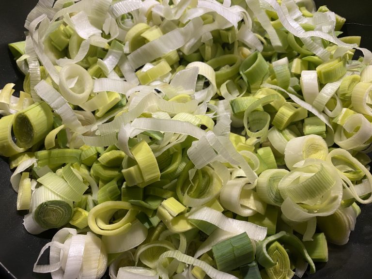 - Den Speck dazugeben. Kurz köcheln lassen.