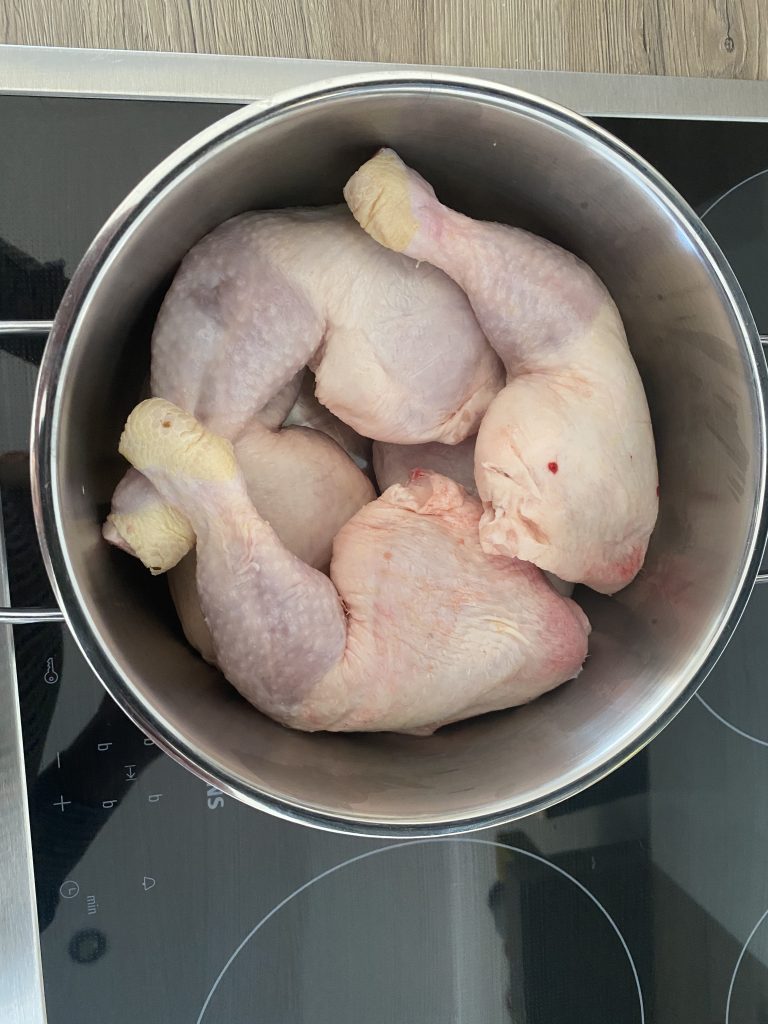 - Wenn die Butter geschmolzen ist das Fett in eine große Pfanne geben. In der ihr nachher auch kocht.Da istultraviel Geschmack drinne, also nicht verkommen lassen.